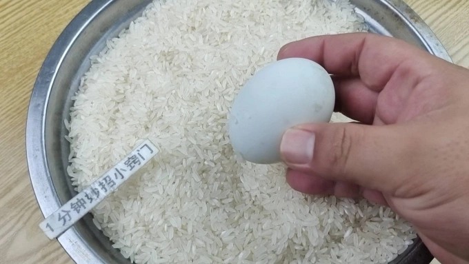 Bạn có thể bảo quản trứng tươi ngon trong thời gian dài nhờ gạo. Cách làm là đặt đầu nhỏ quả trứng xuống dưới, đầu to hướng lên trên. Đầu to chứa túi khí, nên khi đặt kiểu này sẽ giúp lòng đỏ vướng phần khoang khí, không thể dính vào vỏ trứng, ngăn hư hỏng.